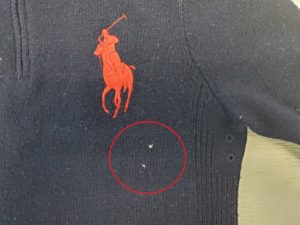 穴があいてしまい、捨ててしまうかな?と思っている洋服はありませんか?捨ててしまうのは、もったいない!!多少目立ちますが、お直し可能です。ほつれや裾上、ウエスト直し、ジャケットの丈詰め出しなど洋服のお直しも出来ますので、お気軽にご相談下さい。