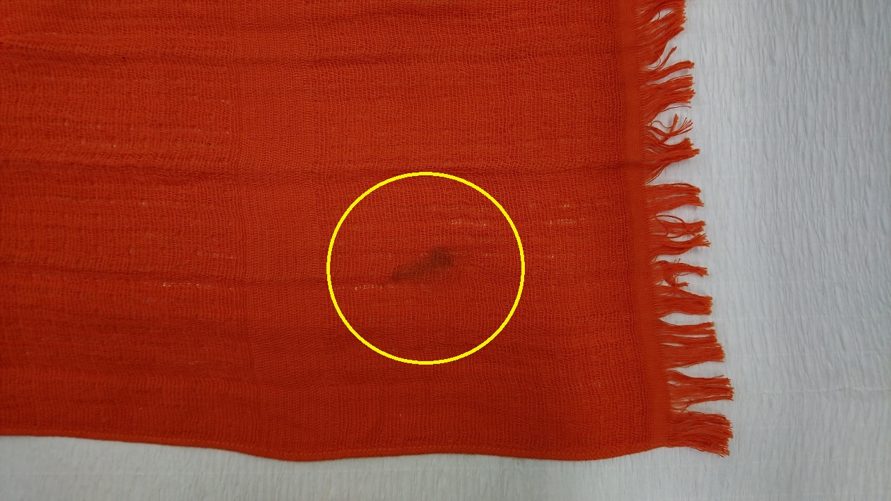 オレンジ色のストールに血がついてしまった